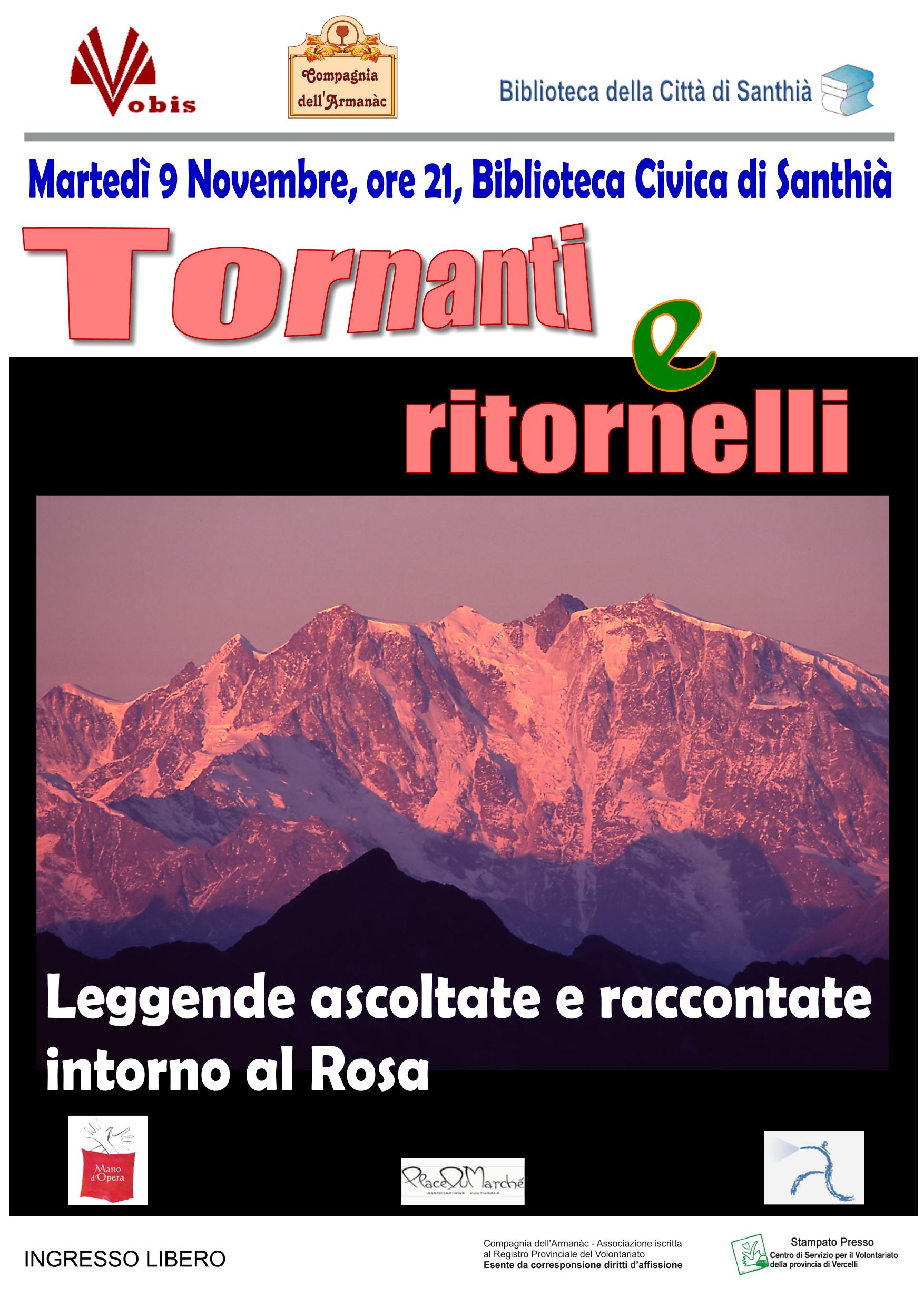 Gli autori ci presenteranno, attraverso collegamenti internet sul nuovo grande schermo della Biblioteca civica di Santhià, lo sviluppo del loro progetto di raccolta di storie e leggende sbocciate nei secoli intorno al massiccio del Rosa. Lo hanno realizzato attraverso laboratori di teatro e narrazione, musica e canto, disegni animati.